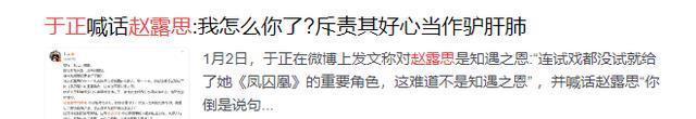 至于对于正,还真没一句好话。 而除了这两位,于正也没放过生病的赵露思。 赵露思去年抑郁症爆出后,也牵连出了过往的不少大瓜。 其实就涉及到了于正。 因为有粉丝扒出于正曾引导舆论网暴过赵露思。