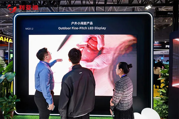 户外,不再是清晰度的“禁区”。在模拟的户外恶劣环境下,利亚德首发的NSO系列、LA系列二代,主打超节能和超高清概念。