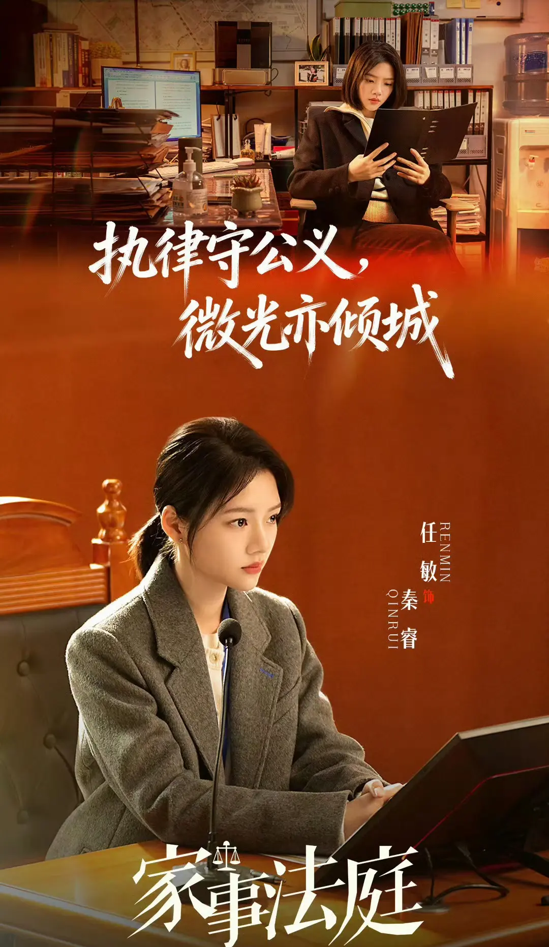 任敏在《家事法庭》里演的秦睿,绝对是今年最讨喜的律师角色。她不是那种西装革履、高高在上的精英大状,就是个刚入行的新手。会跑错法庭,会叫错法官名字,忙起来连口水都顾不上喝。处理家事纠纷时,她懂人情世故,会耐心听家长里短,可一旦触碰法律和道德底线,立马翻脸不认人。