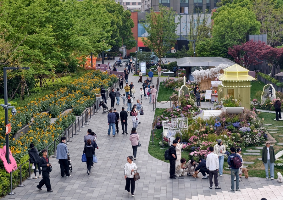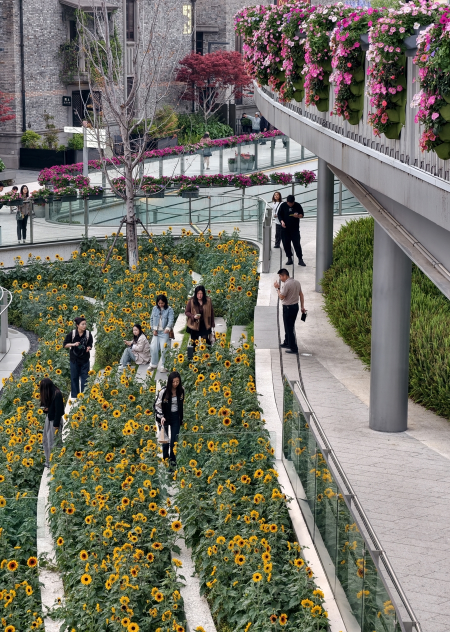 本次静安国际花卉展打破了传统园艺的围墙,主展区设在苏河湾中心绿地,创新打造了 “六园九景” 的特色景观矩阵。