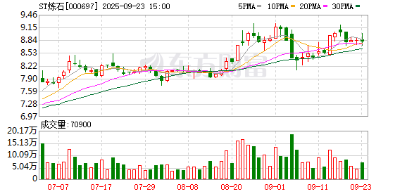 交易行情显示,9月23日,ST炼石收跌0.45%,收于8.8元/股,总市值76.83亿元。
